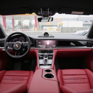 Porsche Panamera interior update (2010-2024) kit | Instrument panel + four door panels original laser precision coating | Scratch-resistant and wear-resistant top layer cowhide Nappa leather | Designed for car seat ventilation/Berlin sound hole seamless adaptation process “zero broken line” universal matching | Purple pomegranate red/graphite blue/Bordeaux red color matching