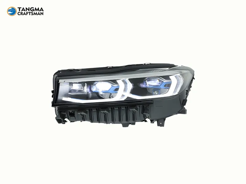 16+ BMW G12 LED Headlights Blue Frame DRL Assembly. Upgrade 16-18 BMW 7 Series G12 with Laser-style lens, dynamic DRL & turn signals for a modern look.