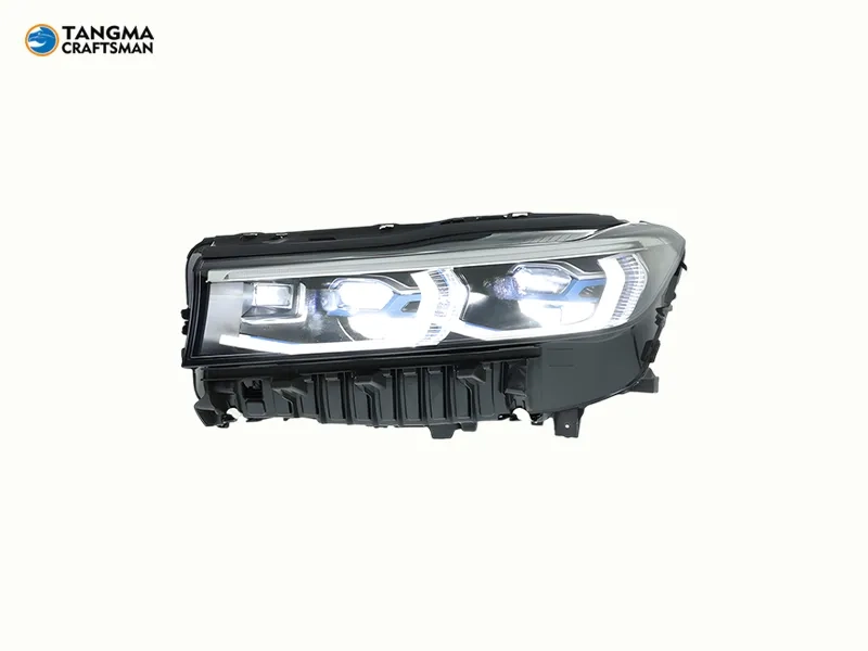 16+ BMW G12 LED Headlights Blue Frame DRL Assembly. Transform your 16-18 BMW 7 Series G12 with our high-performance LED assembly. Featuring iconic blue laser-style frames and advanced projector lenses, this kit includes dynamic DRL and sequential turn signals for superior night visibility and a premium 2024+ facelift appearance.