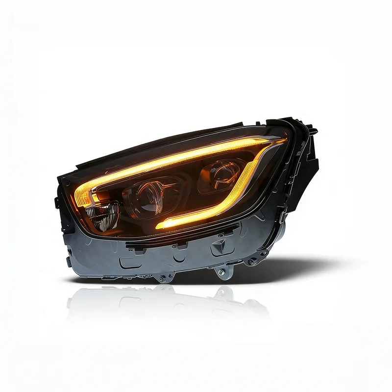 16+ Mercedes GLC LED Headlight X253 Bumper Upgrade: Perfect for 2016-2019 (requires bumper replacement) and 2020-2023 facelift models upgrading from low to high spec. These high-performance LED projector lamps include dynamic signals and DRLs for Benz GLC X253.