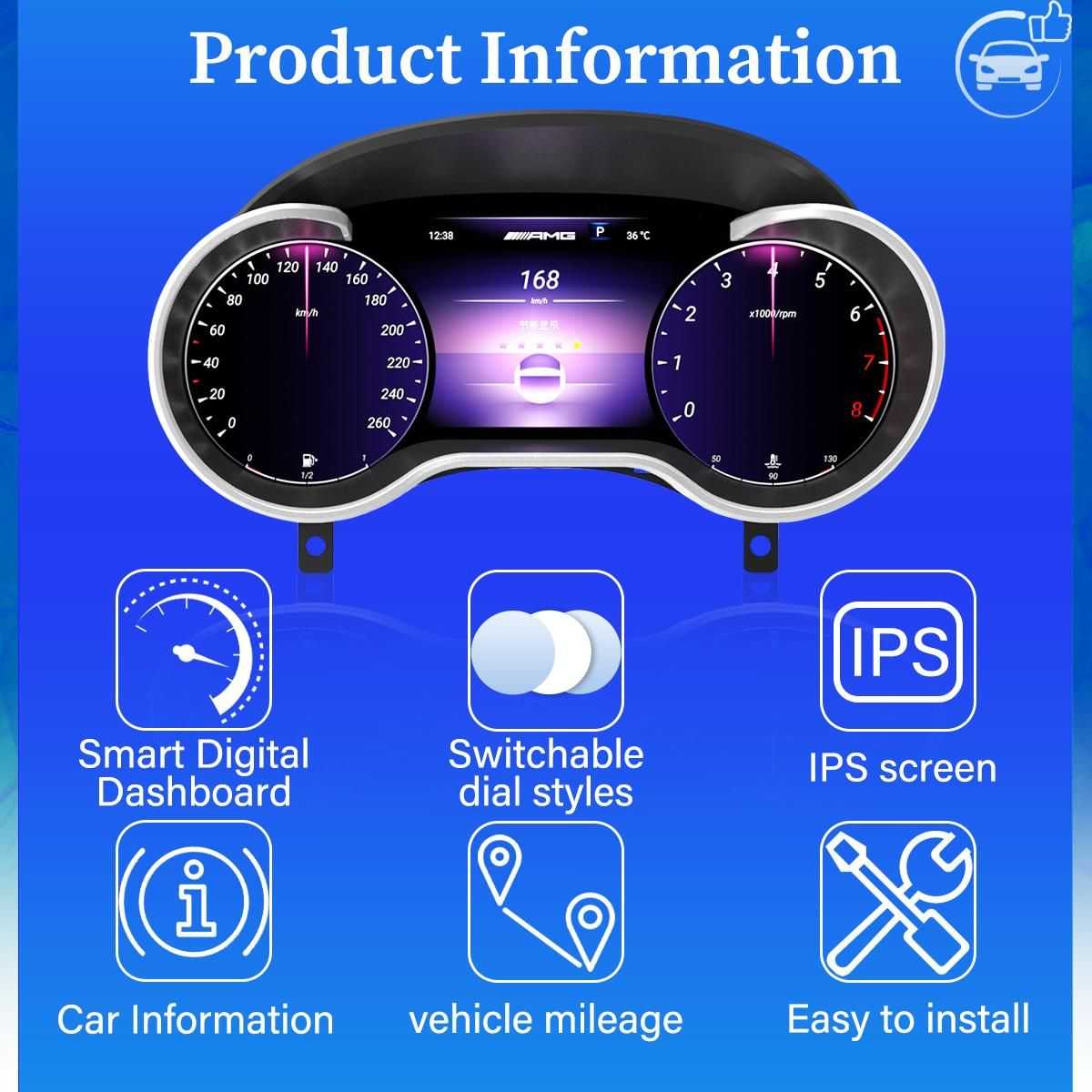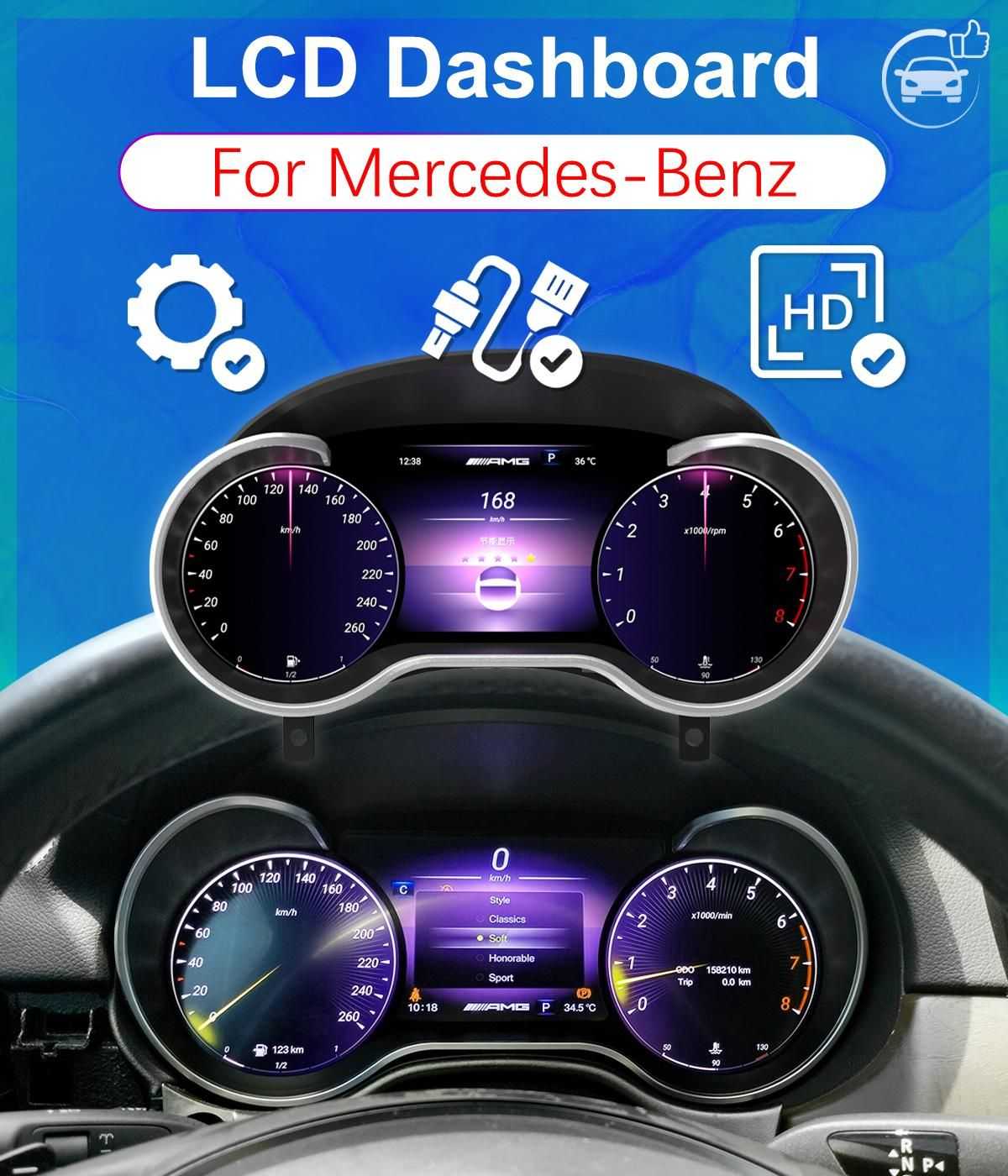 Benz instrument panel 12.3 LCD for GLA CLA: Premium Intelligent Digital Speed Display HD Dashboard Replacement. High-Resolution Modern Upgrade for Mercedes.