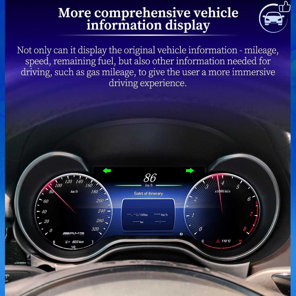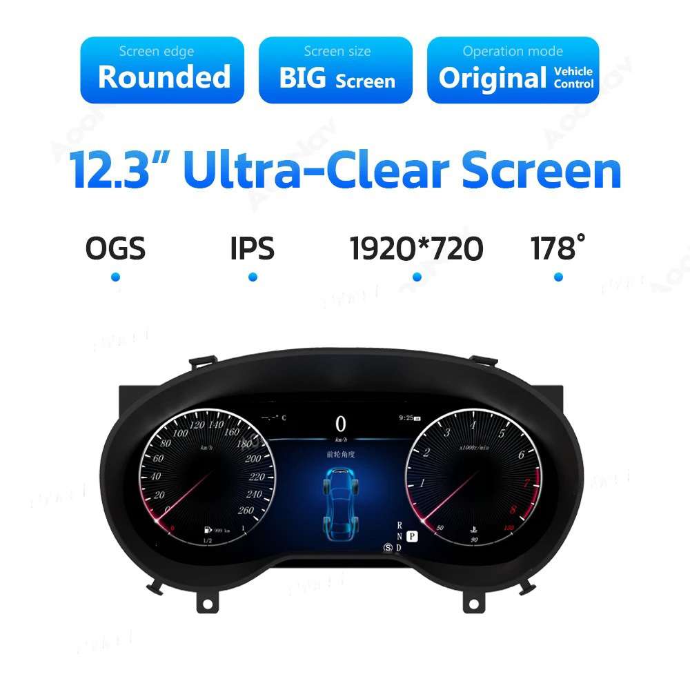 Benz instrument panel 12.3 LCD for GLA CLA: Premium Intelligent Digital Speed Display HD Dashboard Replacement. High-Resolution Modern Upgrade for Mercedes.