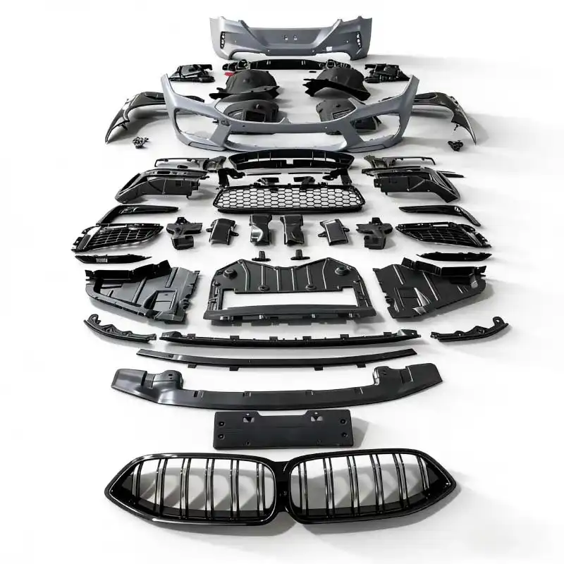 A BMW body kit may include front bumpers, rear bumpers, side skirts, diffusers, spoilers, grille upgrades, and other exterior styling components depending on the model and package.