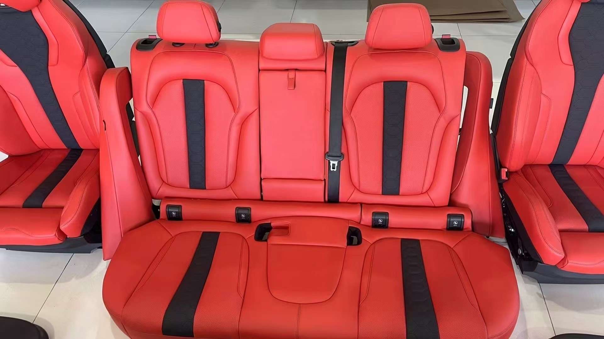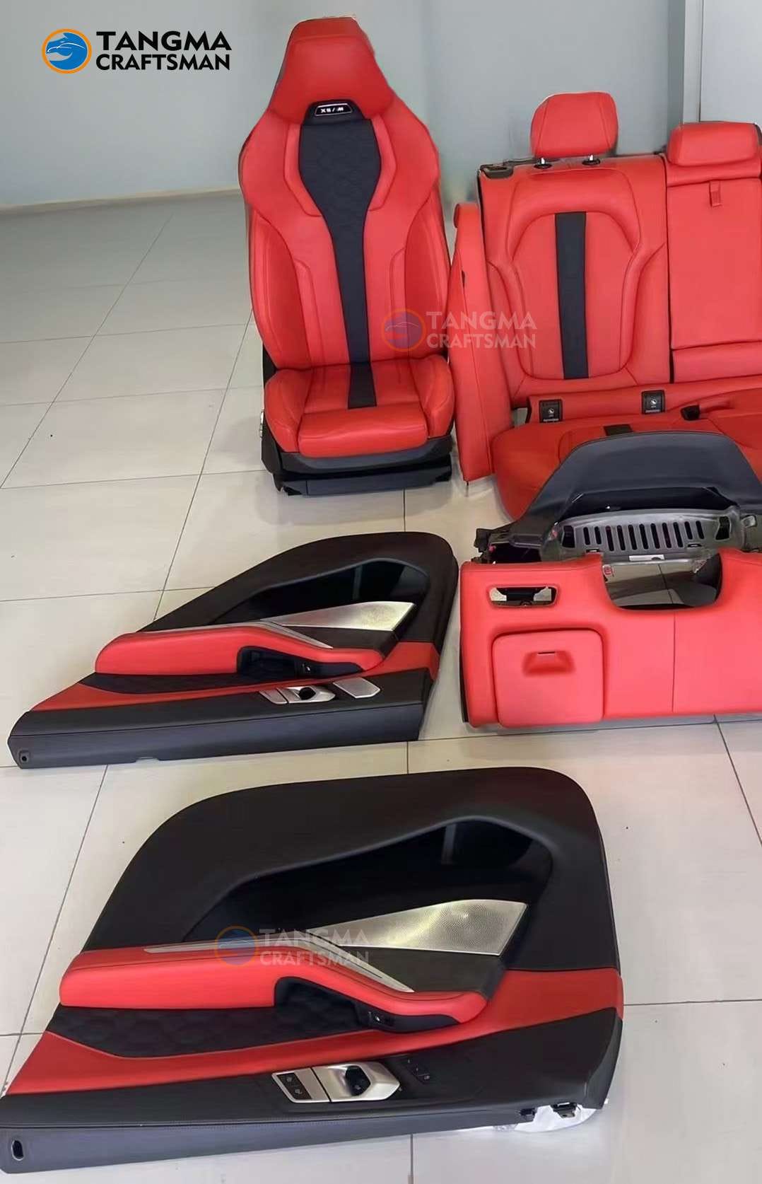 BMW X5 interior modification kit (2010-2024 models) | Automotive grade calfskin craft Bordeaux red (ISO 17025 wear test) | Original car HUD/ambience light non-destructive calibration | Including VOC environmental protection report + touch durability verification