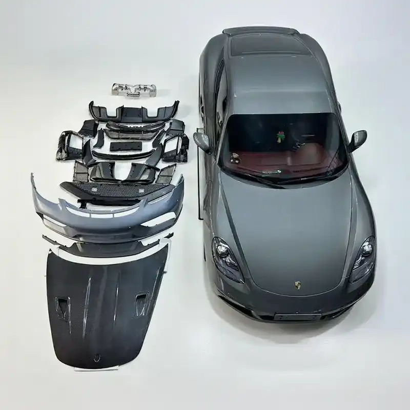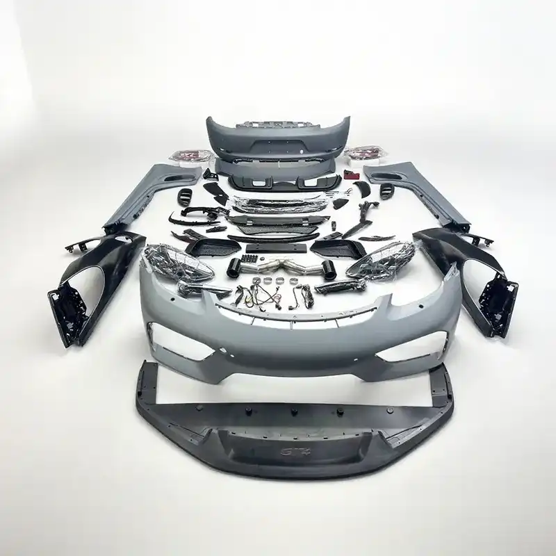 Front bumper assembly (including parts), front headlight ring, fender, taillight, trunk lid, rear fender (no cutting required), rear bumper assembly (including parts), rear lip, exhaust pipe