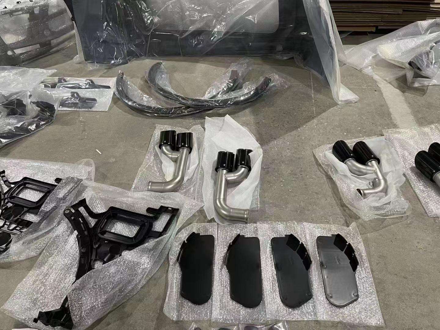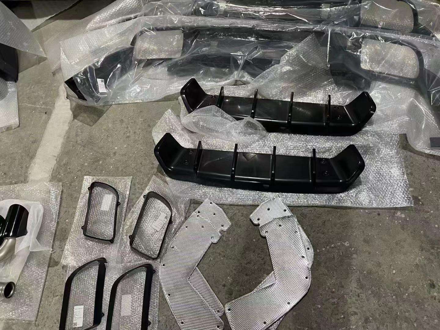 Front bumper assembly (including parts), headlights, fender flares, taillights, trunk lid, rear fender, rear bumper assembly (including parts), rear lip, exhaust pipe