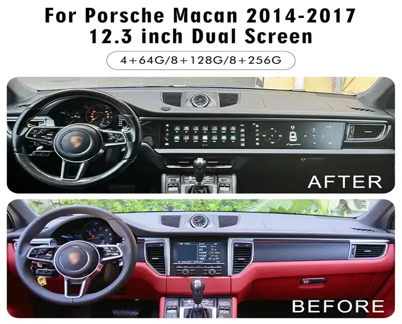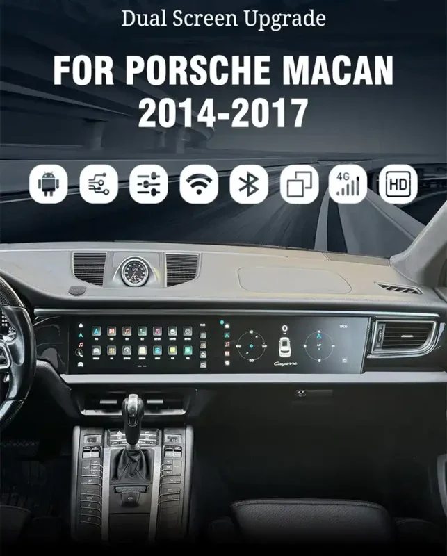 Porsche Cayenne dual screen 12.3 HD Android player for 14-17 models. Upgrade your interior with a high-definition passenger entertainment system.
